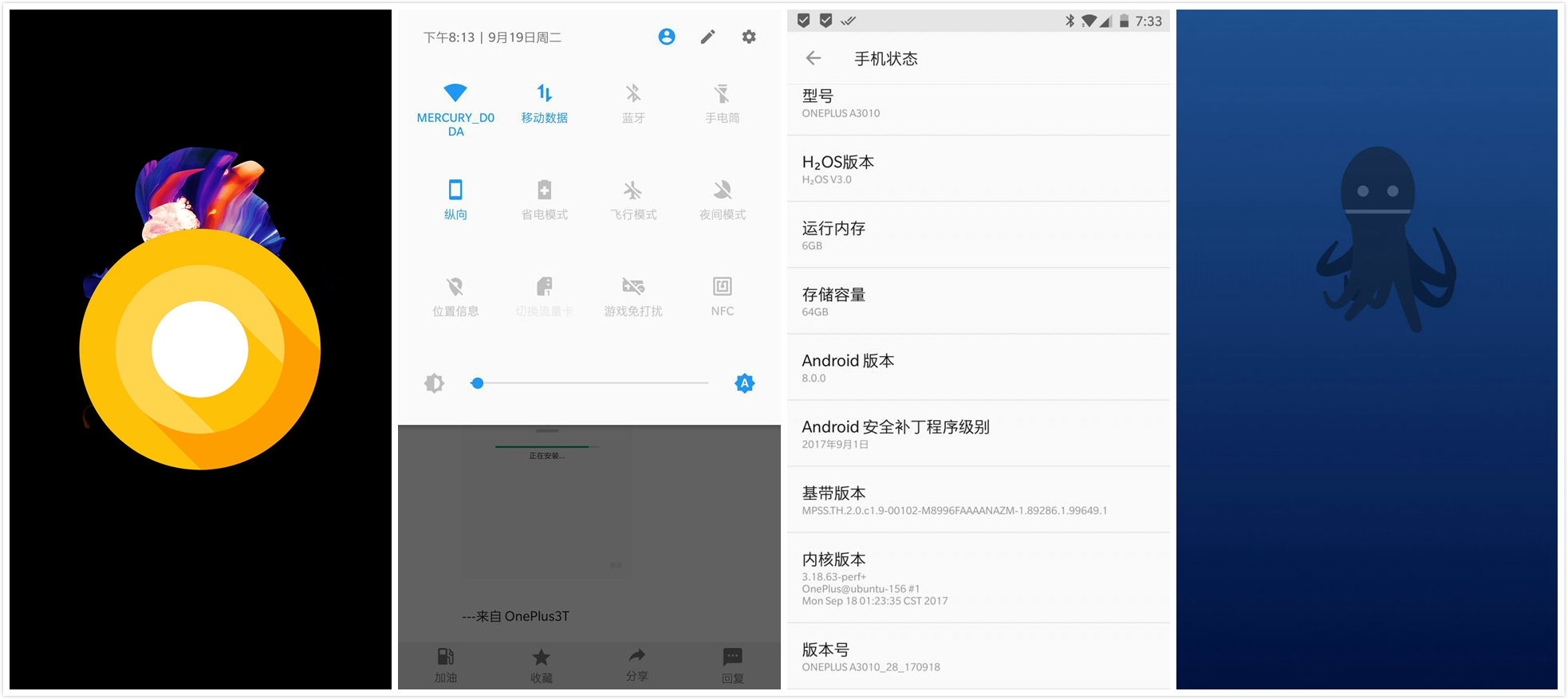 在安卓8.0刚发布后,一加CEO刘作虎就表示一加将尽快为旗下受支持的机型升级安卓8.0,在本月上旬一加3的安卓8.0官方ROM曝光后,昨天晚上来自IT之家网友曝光了一加手机3T的安卓8.0适配进度并泄露了界面UI,如图所示: