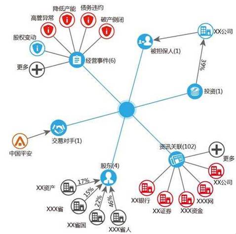 除此以外,通过知识图谱,也可以将行业和企业之间数据进行连接,借助对行业的潜在风险的预测,能够及时发现与该行业风险或系统性风险相关联的企业客户。例如,某地区某行业连续出现了多笔逾期贷款,通过对行业和客户的知识图谱进行分析,可以及时发现该地区相关行业存在潜在风险的客户。