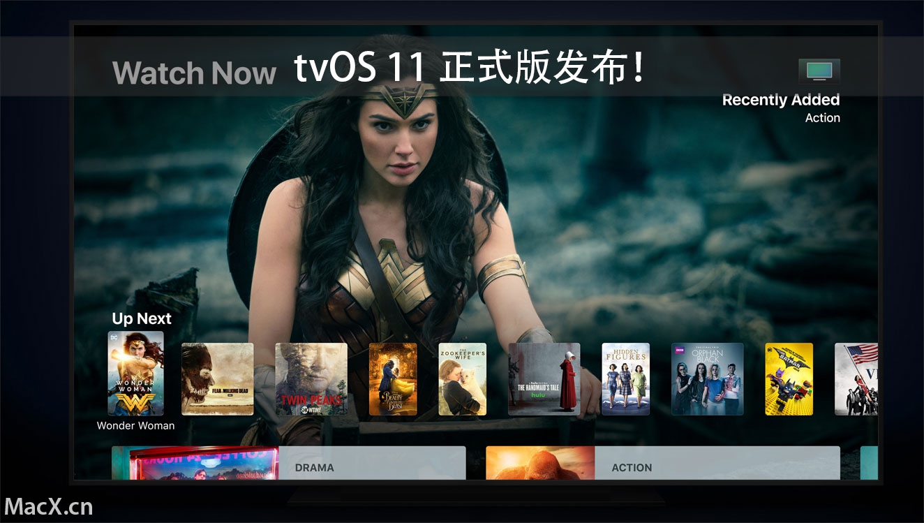 在第五代 Apple TV 上,也就是 Apple TV 4K,tvOS 11 增加了对 4K 内容的支持。