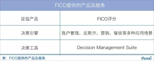 FICO提供的产品及服务众多,征信产品FICO评分最为出名,应用于风控决策领域。此外,FICO还提供账户管理、反欺诈、催收等众多业务场景决策引擎。每个决策引擎都包含数量庞杂的算法,以适用于不同使用情景,充分体现了FICO的数据分析和预测能力。