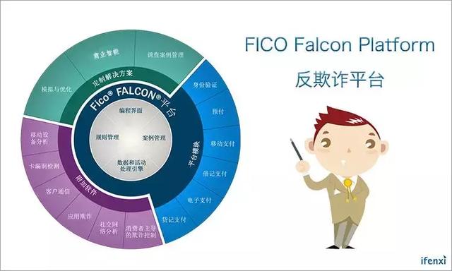 FICO构建了反欺诈平台(FICO® Falcon Platform),为银行、保险公司、政府等机构提供反欺诈服务。平台本身包含身份验证、移动支付反欺诈等通用算法模块,同时也可以添加定制服务,比如BI等服务。此外,也可以添加社交网络分析、移动设备分析等模块。
