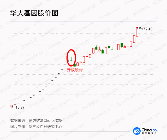 然而华大基因在开板后,资本市场对其追捧的热度仍未衰减,之后又是一路高歌猛进,截至2017年9月9日公司宣布停牌,收盘价定格在172.48元,较发行价和“开板价”分别上涨1,164.52%和60.93%。