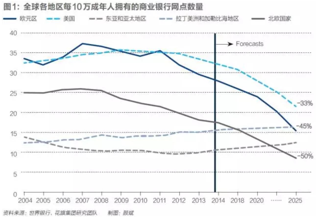 在田亚非看来,“去现金化”趋势一方面使银行变得更有效率,从有效经营的角度来看,接近“无现金社会”的北欧国家的银行业在全球是领先的,其成本收入比接近45%。据花旗测算,拥有广泛网点的银行,其网点运营和人员等成本可占其总成本的六成左右。