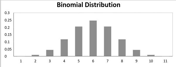 而成功概率和失败概率相等的二项分布看起来如下图所示: