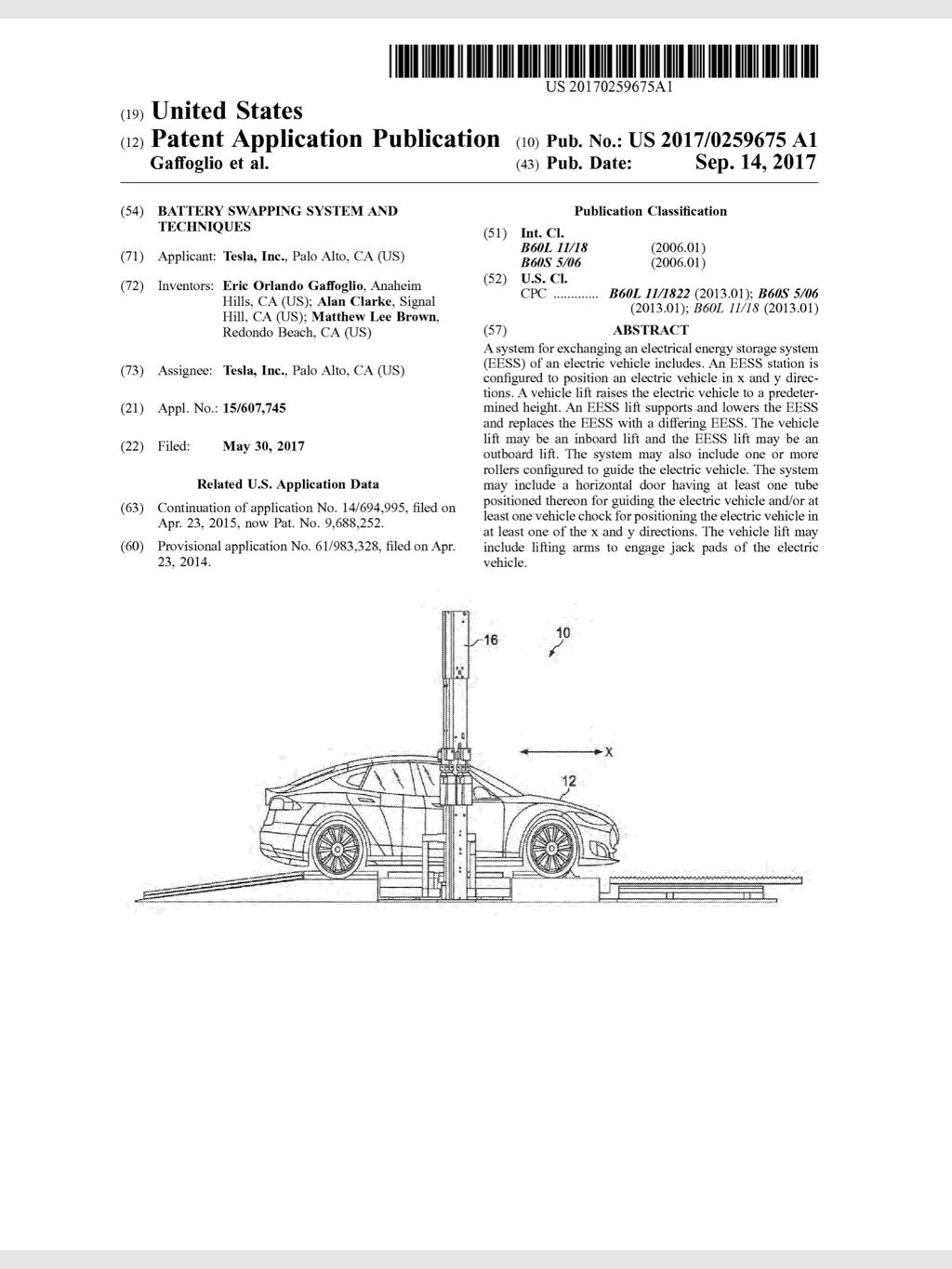 直到近日,特斯拉在美国专利商标局再次申请了一种新型的换电方案,又让换电方案普及的可能性大了起来。