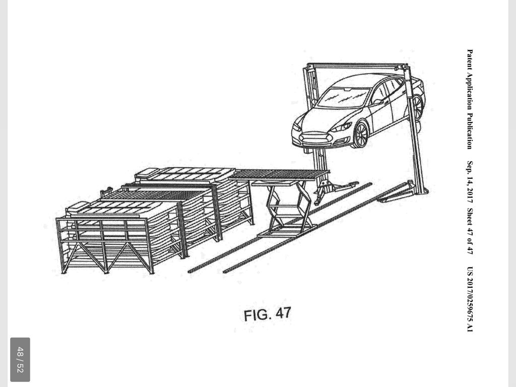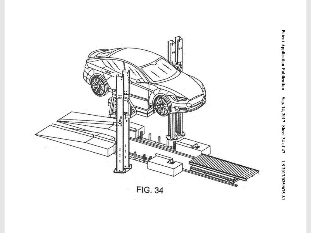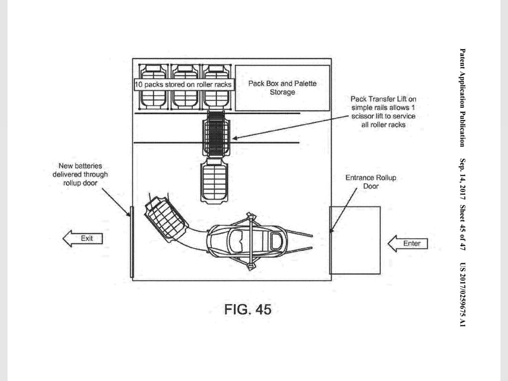 整个专利的文件足足有 52 页,但是实现方式非常简单,特斯拉此次申请的是一整套非常成熟的换电站方案,整个站点由三部分组成。