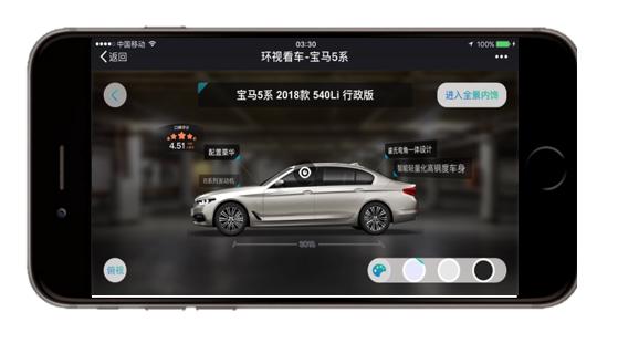 汽车之家在即墨VR网上车展实现了AR、VR看车体验的融合,针对部分受用户关注度较高的畅销款车型,汽车之家借助3D渲染技术将汽车高精度还原,用户在线上车展上可根据自身需求来调换车型、车体颜色进行对比参考,可视觉体验百公里加速、上路体验(线上试驾)等。同时,用户还可以通过全景看车的功能,360°无死角查看汽车外观及内饰,享受沉浸式的看车体验。