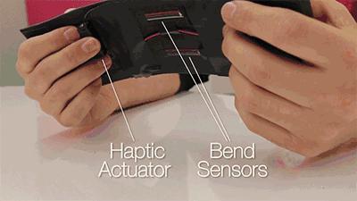 能做到这些,归功于手机背面的Android弯曲传感器,以及用于收集用户反馈的触觉致动器。