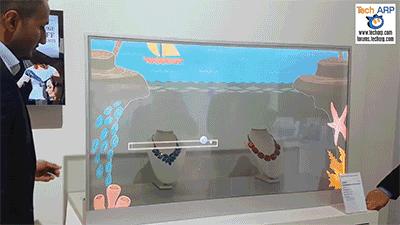 还有这款透明OLED显示技术,明明就是一块透明的玻璃,屏幕上显示的内容却十分清晰。