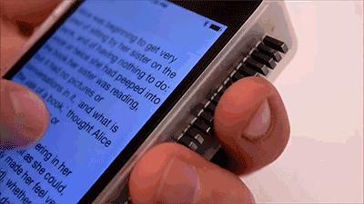 手机侧边装载了40个微型线性传动器,当你用这部手机阅读文章时,侧面的传动器会通过变化形状,让你感受并推测出自己的阅读进度。