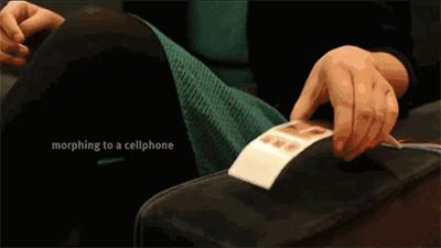 加拿大皇后大学还有款原型机Morephone,同样也很会弯,在接到来电时会自动弯曲机身,如果装在裤子里时碰巧来了电话,可能会造成尴尬的迷之凸起。
