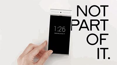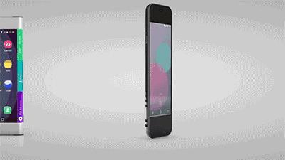 披上黑色外衣,身具微型伺服传动器的它,变成一个可触摸输入的真·黑科技手机,不过外观相当的抽象。