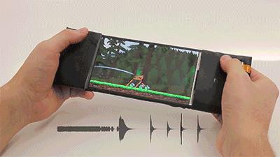 这种用手机屏幕接收弯曲力的反馈,实现了物理力量与虚拟物体的实时交互,弯曲的角度和力度还可以对应游戏操作,比如控制愤怒的小鸟,射出致命一击。
