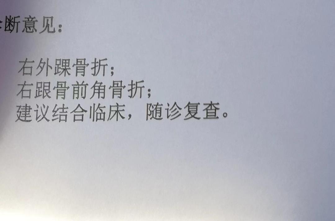 当然,最后电影没看成,朋友直接送我回家了。休息一晚上之后,我觉得腿没那么疼了,便以为只是普通的扭伤,休息几天就能好,也不会耽误我半个月后的旅游计划。但是家里人听说我摔倒后,让我一定去医院检查一下,无奈之下我只好一早一个人去医院挂号看医生。做完CT检测后,我拿到结果一看,被吓了一跳,“骨折”。