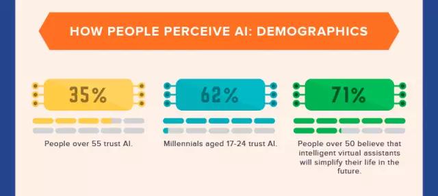超过55岁的人群,只有35%的人信任AI;