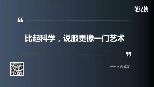 在书中,西奥迪尼同时警告我们:当面对任何一个听上去具有说服力的论证,即便我们在本能上很赞同,我们也必须花同样多的时间去分别考虑失败和成功的可能性。