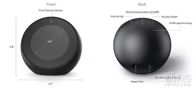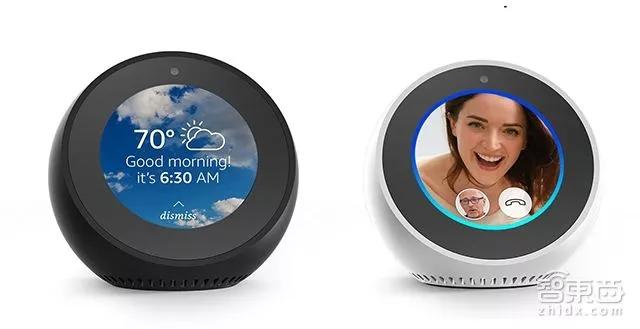 Echo Spot是一个半球状的新硬件,售价129.99美元,可以看作是一个带屏幕的Echo,有黑色跟白色两种颜色,球面直径约10厘米,带有一个2.5英寸的圆形屏幕,用户可以用它来显示图像、歌词、视频聊天等。