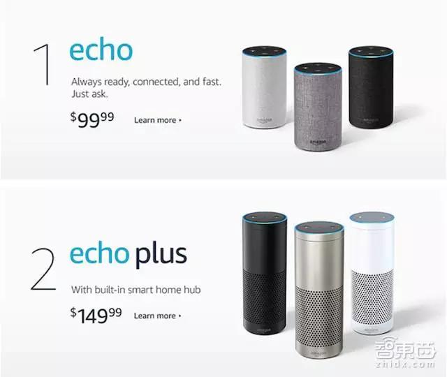 而本次推出的新款Echo与Echo Plus,不仅更小巧、更智能、更多设计、在麦克风/扬声器都做了优化、加入了打电话/发短信功能、以及加入了众多智能家居控制功能——而且把价格压到了99.99美元和149.99美元!