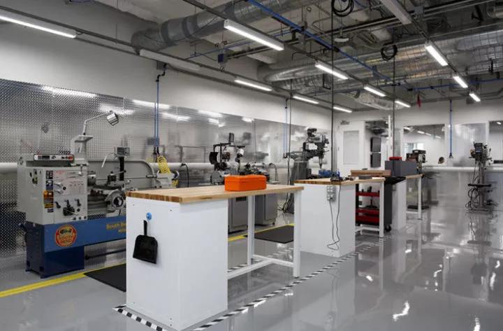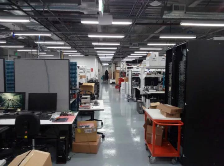 Area 404 占据了 17 号楼的一楼区域,实验室分为两个部分,一部分是研发和设计,另一部分则是工程和制造,整个实验室呈 L 状,像一个俄罗斯方块般嵌套在建筑中。如果不是有工作人员带领,访客很有可能被实验室的」庭院深深「绕到迷路。作为公司黑科技重地,Area 404 的保密工作做十分到位,除了出入口需要刷卡,实验室里面不少独立车间配有单独的门禁,同样需要刷卡进入。