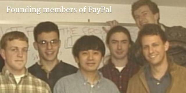 在世纪末的互联网泡沫来袭时,x.com和confinity这两家公司合并取暖。他们用当时 confinity 做的最好的产品命名新公司,名字叫做Paypal。两位创始人自此变成了一条船上的兄弟。这俩人就是日后的大神亿隆马斯克Elon Musk和皮特比尔Peter Thiel。