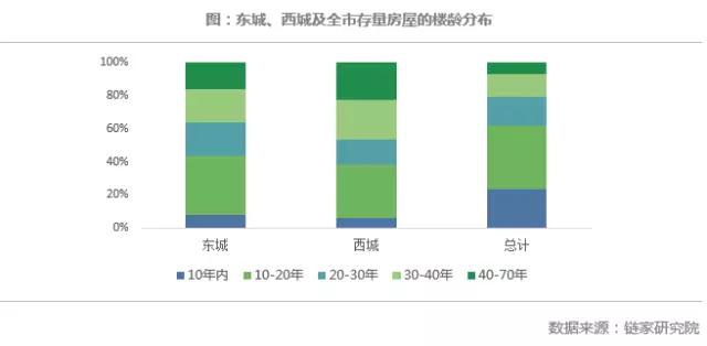 北京城市新规划里提到“减量集约”发展的要求,尽管新规划也提到要增加住宅供地力度,但从实际供地结构看,更多的土地将会用在租赁用房、共有产权房等政策性住房领域,而纯商品住宅的供应将会越来越少。在这种情况下,要满足居民居住改善升级的需求,一个重要的方面就是依靠对老城区存量住房的更新改造。北京市拥有核心教育、医疗、交通等配套资源的东西城区楼龄较老,尤其是西城区楼龄30年以上的房屋占比46.5%,这些房屋的居住条件相对落后,在“不拆老城”的规定下,城市更新有利于提高中心城区的宜居性。