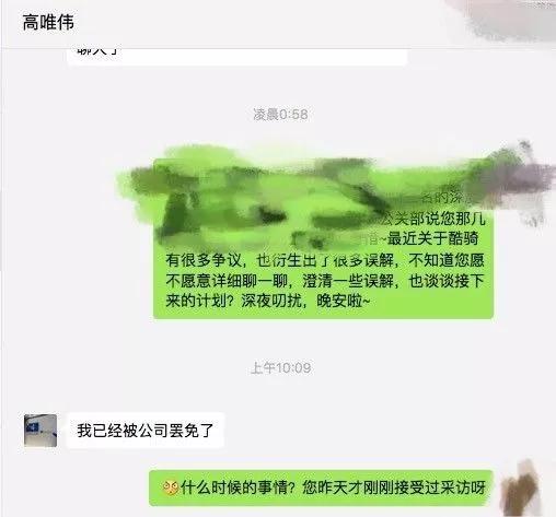 高唯伟对此回应称,酷骑单车最近要被全资收购,两家公司有业务和人员重叠的地方,所以要进行人员优化。然而目前,高唯伟称自己也“已经被公司罢免了”。