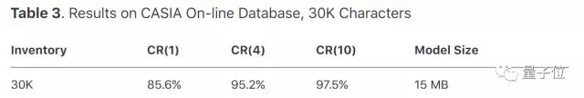 为了解系统如何支持30000个手写字符识别,我们还在许多不同测试集上对其进行评估,这些测试集支持所有字体的字符。平均测试结果如下: