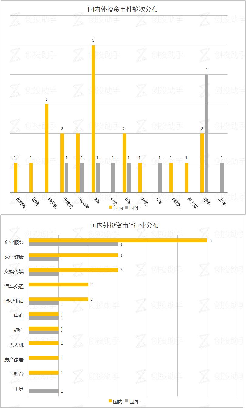 本日国内外共有32起融资事件,分布在13个行业中。国内20个项目获得融资,国外12个项目获得融资。