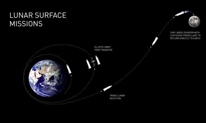 BFR轻易抵达月球,且可以当做月球上的据点。
