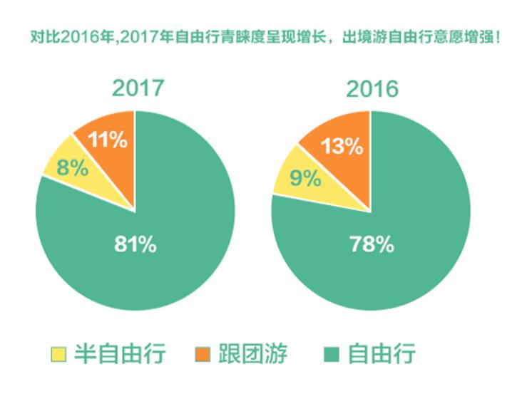看完出境游人群特征之后,必须看看他们怎么游、最喜欢去哪里吧。根据飞猪的数据,其中有超过八成人选择的是自由行,比例比去年稍有上升,这说明近几年OTA和旅游平台们重点发力自由行市场的方向木有错。