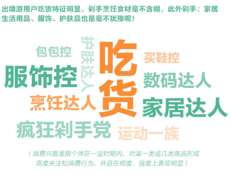 至于这些出境游用户身上可能有什么标签,只能说都是会享受生活(与美食)的人。他们放不下美食、戒不掉剁手,还喜欢自己做饭,家居生活用品、服饰、护肤品等都是他们剁手的选择。