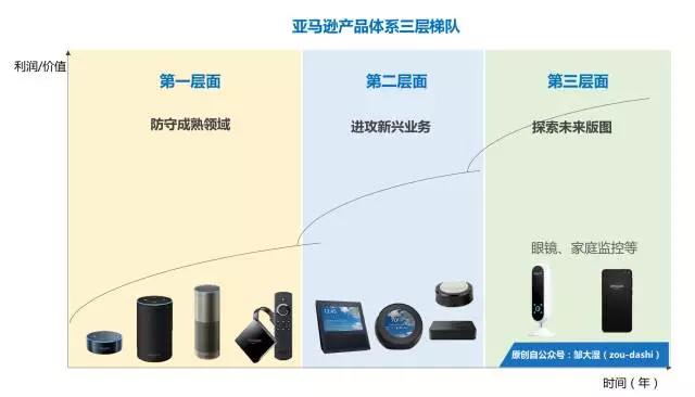 在国内,大疆就是一个很典型的实践案例:预研一代,旗舰一代,降价一代。亚马逊新发的6个新品,同样可以划分到如下三层版图中。