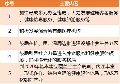 随后,2014年4月23日,浙江省人民政府发布《关于加快发展养老服务业的实施意见》,要求完善投融资政策、土地供应政策、社区居家养老服务用房政策、税费优惠政策等7项举措。
