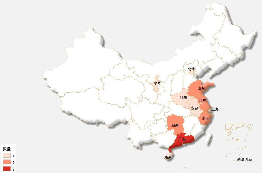 从地域分布来看,健康城项目落地地点基本上集中在发达省份的发达城市,比如广东省、江苏省、浙江省,内地包括河南省、宁夏回族自治区、安徽省均落地了项目。