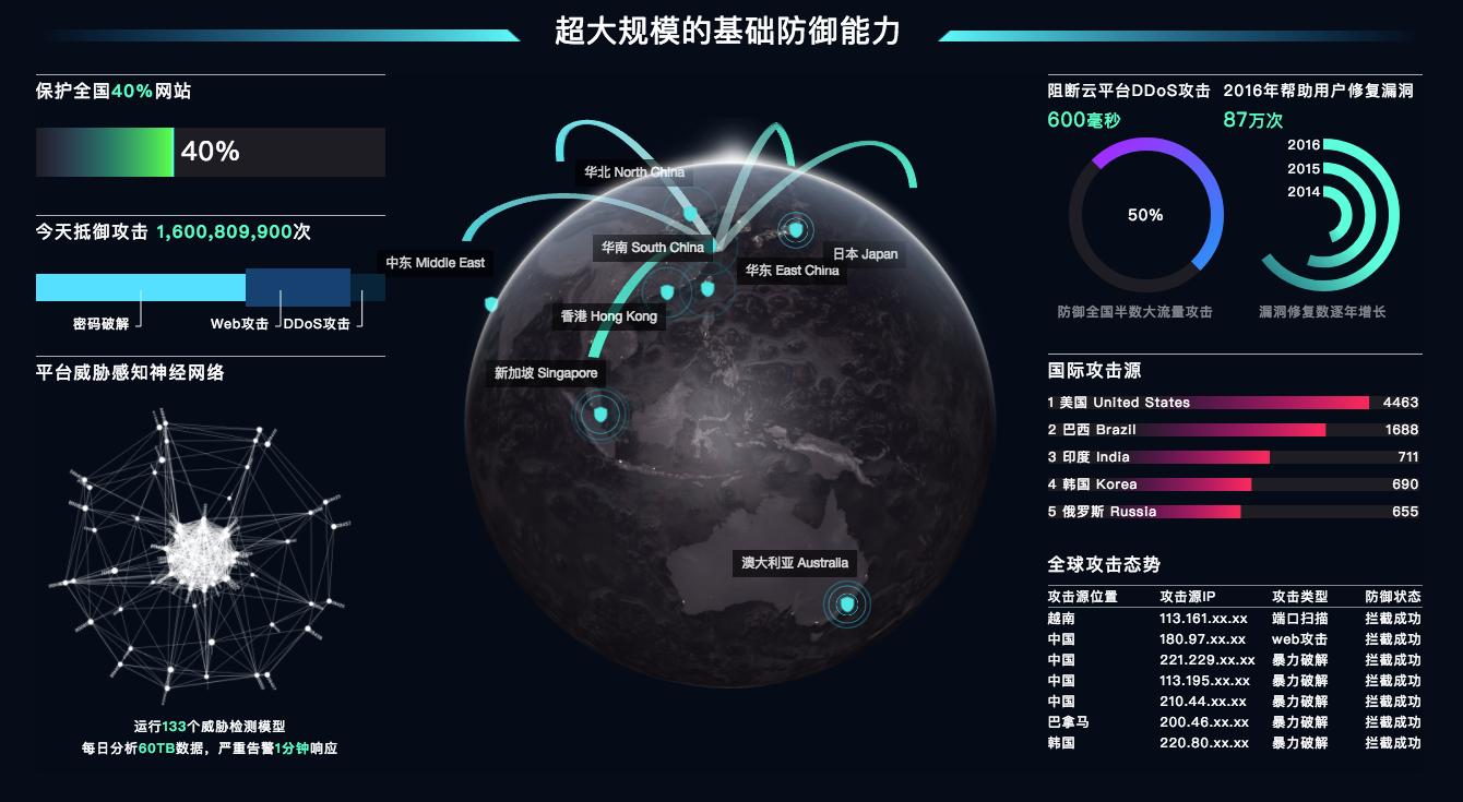 阿里云方面称,目前阿里云承载着中国四成以上的Web网站、移动应用、IT应用,其中包括大量政府客户,各地的基础设施和智慧城市项目等。每日面临大量来自外部黑客的攻击。