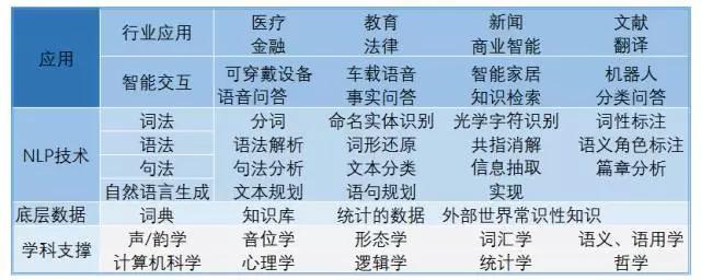 包括以语言学、计算机语言等学科为背景的,对自然语言进行词语解析、信息抽取、时间因果、情绪判断等等技术处理,最终达到让计算机“懂”人类的语言的自然语言认知,以及把计算机数据转化为自然语言的自然语言生成。