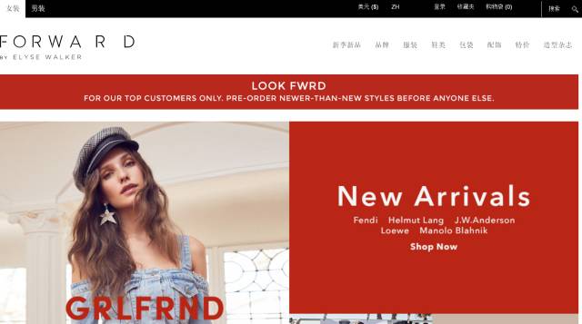 图为以奢侈品为定位的线上网站 FORWARD by Elyse Walker 的中文版