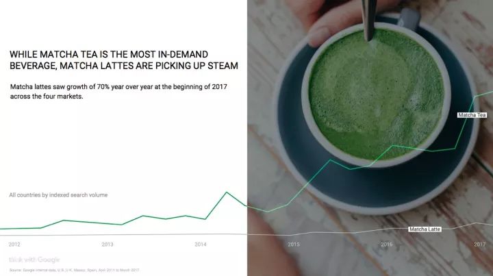 虽然抹茶口味的食品(如拿铁)也是一个新趋势,但人们显然更喜欢纯粹的抹茶茶饮。