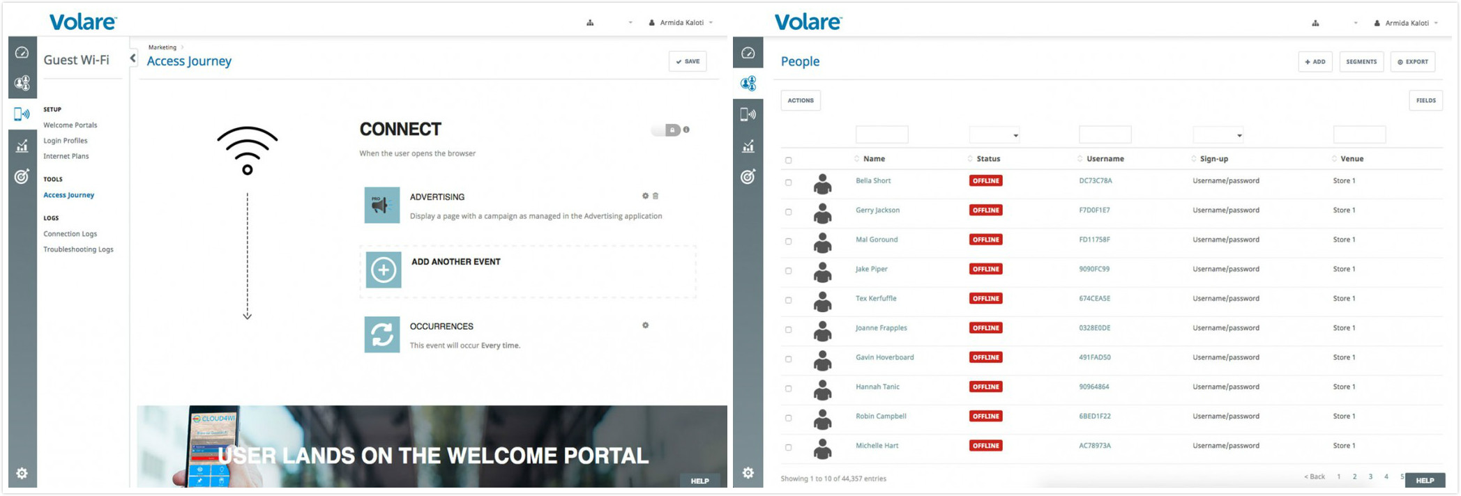 Cloud4Wi 是一家 WIFI 服务平台供应商,通过 WiFi 帮助企业了解其客户,从而为客户提供更好的购物、上网体验,帮助企业营销。同时在这个过程中,收集用户行为数据,帮助第三方商家导流。旗下有 Volare 和 VolareXP 两种服务模式,前者主要服务于一些有 WiFi 的实体店,比如大型连锁零售店、连锁餐厅和购物中心,帮助他们构建品牌;后者主要为一些中小企业提供类似功能,下面我们来具体介绍。