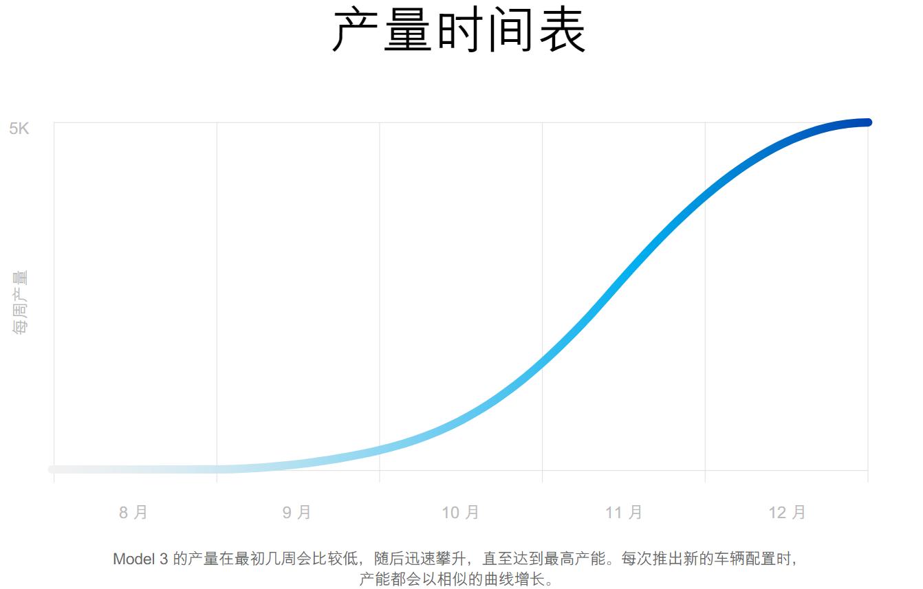 尽管如此,当被问及特斯拉官网的Model 3在线设计工作室(用于选配轮毂、座椅及车漆配色等)何时由员工车主转向普通车主开放时,Musk回应称大概需要6~8周。这也就意味着,特斯拉仍然坚持既定的10月下旬开始向客户交付车辆不变。但Musk的态度趋于谨慎:“需要强调的是:产能攀升是一个指数曲线,10月下旬(开始交付)是可能的,但我无法保证。产能数据每天都在发生重大更新。”