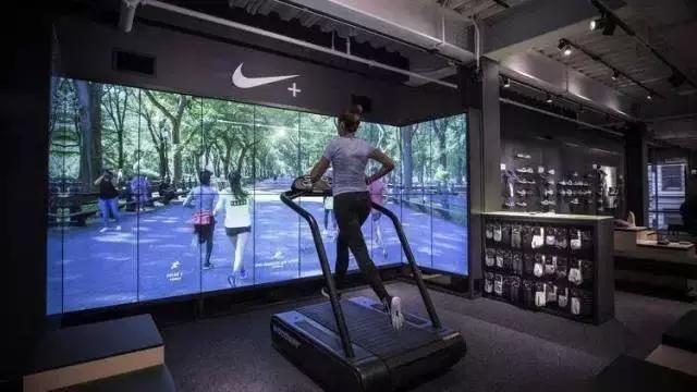 这些新奇的体验大多来自种种智能硬件,比如马克华菲推出的智能大屏:为商品配置类似于身份证的RFID,通过屏幕传感器感知到用户试穿,在屏幕中同步呈现模特试穿效果、产品介绍、评价、推荐搭配等等。又比如耐克把和苹果联手打造的Nike+移植到了门店中,消费者可以穿着鞋子在跑步机、篮球场上运动,面前的大屏则会显示出相关数据。