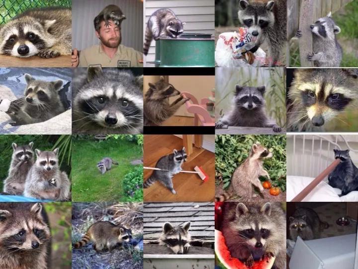 4.哪里去找数据呢?互联网是最大的资源啦。包括各大搜索引擎的图片搜索和图像网站,寻找一些不同尺度、位姿、光照下的图片。作者找了大概两百张的浣熊图片来训练自己的检测器(数据量有点小,但是来练手还是可以的);