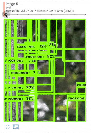 完成训练之后我们需要将模型保存下来,通常使用checkpoint的模式来保存。由于我们是基于云端训练的,需要通过一个脚本将模型导入到本机使用。下面是作者将这个模型放到一个youtube浣熊视频中的结果: