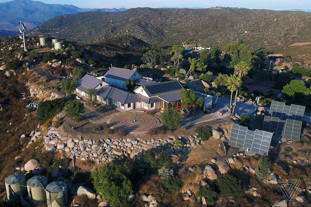 不过,这种房子也有其天然的限制,它只适合自然能源充足的地方。从图中我们可以看到,这对夫妇住在山顶的一片平地上。可以想见,由于地势比较高,风能和太阳能都比较容易吸收。这种自然条件显然不是每个地方都有的。