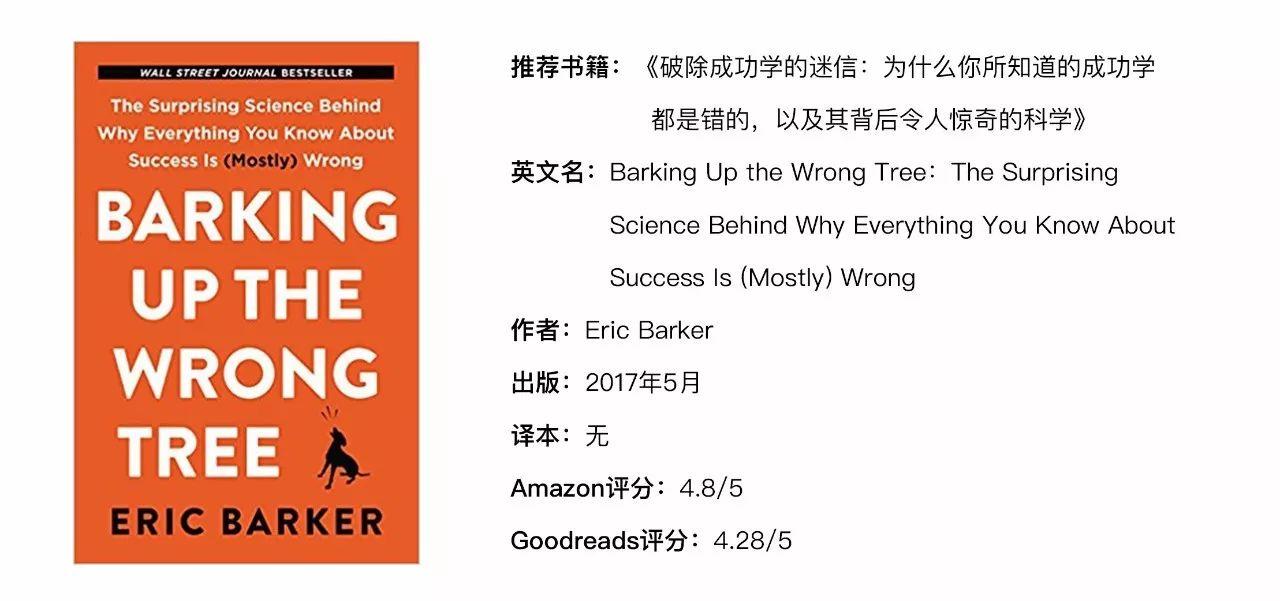 或许,巴克尔的新书《破除成功学的迷信:为什么你所知道的成功学都是错的,以及其背后令人惊奇的科学(Barking Up the Wrong Tree:The Surprising Science Behind Why Everything You Know About Success Is (Mostly) Wrong)》,可以帮助解释这个问题。这本书一经出版,随即就登上了《华尔街日报》的畅销榜。