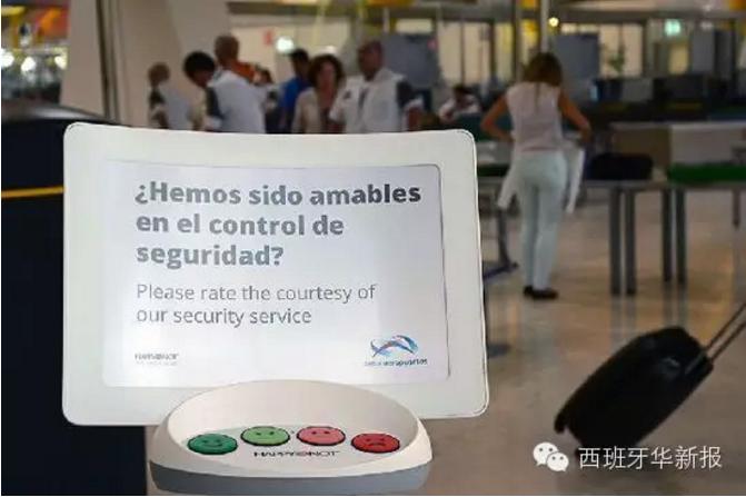 例如,HappyOrNot 就在马德里巴拉哈斯机场以及巴塞罗那埃尔普拉特机场安装了一种互动性的质量控制测量系统——HappyOrNot调查仪,用以调查旅客对机场安检服务的满意度。