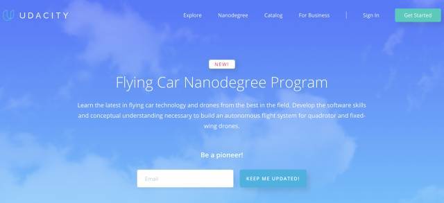 前不久的TechCrunch Disrupt大会上,谷歌无人车之父、在线教育平台Udacity的创始人Sebastian Thrun公布了一个令人振奋的消息——Udacity将会在明年年初上线飞行车教程!打开Udacity的网站,网站上赫然写着“Flying Car Nano-degree”!