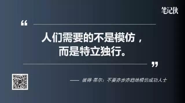 如何破除这种所有人在一个领域竞争的模式,去寻找一些新的领域?彼得·蒂尔认为,模仿别人是没有办法很好地突破和创新的,因为总是没有从自己的角度进行自主的思考。