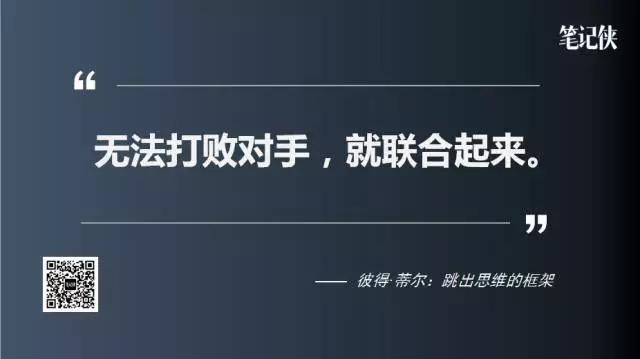 因此彼得对于竞争的态度是:无法打败对手,就联合起来。当初彼得·蒂尔联合埃隆·马斯克创造了Paypal。