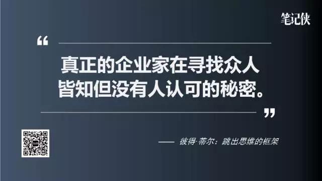 彼得·蒂尔认为,所有的创业公司都是基于某一个秘密建立起来的,每个公司背后都有一个所谓的“近在眼前,但是没有人认识到的秘密。”